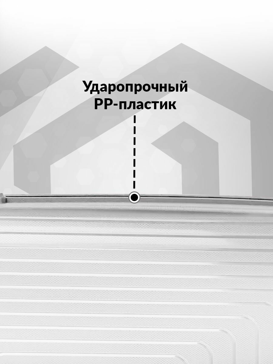 | Особенности конструкции | водонепроницаемый, жесткое дно, износостойкий, опорные ножки на боковой стенке, ребра жесткости, усиленные углы |