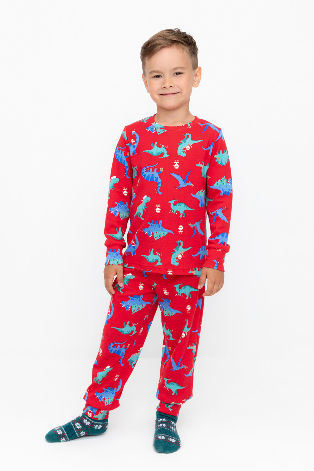 10 цен на Пижама crockid К 1552/насыщенно-красный,динозавры, размер 60/116, красный