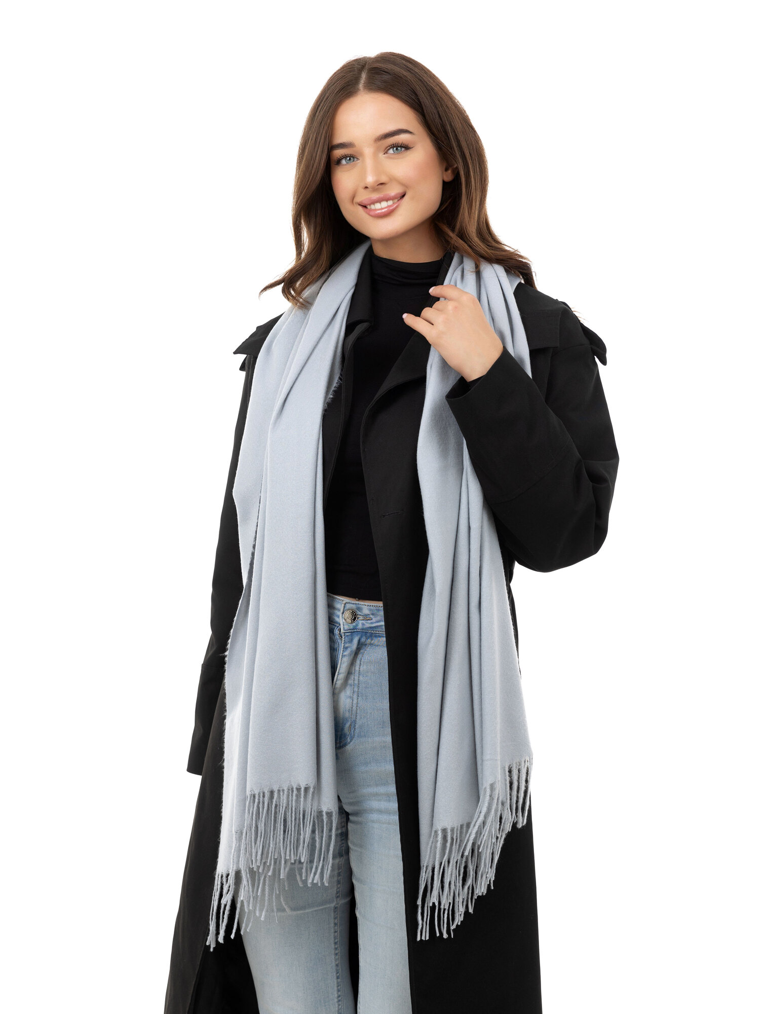Кашемировый женский шарф, осень-зима, серый
