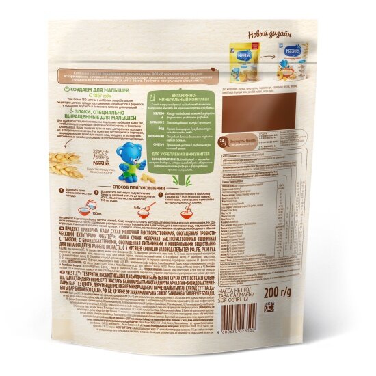 | Состав | мука пшеничная (67,7 %) (содержит глютен) / молоко сухое обезжиренное (16,5 %) / смесь растительных масел (низкоэруковое рапсовое / подсолнечное высокоолеиновое / подсолнечное) / антиокислители (L-аскорбилпальмитат / альфа-токоферол / лимонная кислота) / хлопья тыквы (4,1 %) (тыква / крахмал кукурузный / мальтодекстрин) / сахар / минеральные вещества (кальция карбонат / железа (II) фумарат / цинка сульфат / йодид калия) / витамины (С (L-аскорбиновая кислота) / E (DL-альфа-токоферола ацетат) / РР (никотинамид) / B5 (D-пантотенат кальция) / A (ретинола ацетат) / В1 (тиамина мононитрат) / В6 (пиридоксин гидрохлорид) / В2 (рибофлавин) / B9 ( фолиевая кислота) / D (D3 холекальциферол)) / бифидобактерии не менее 1х10^6 КОЕ/г |