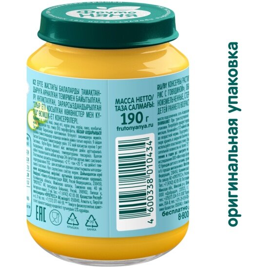 Пюре Фрутоняня говядина овощи рис с 9 мес 190 г (6 шт в упаковке) информация: