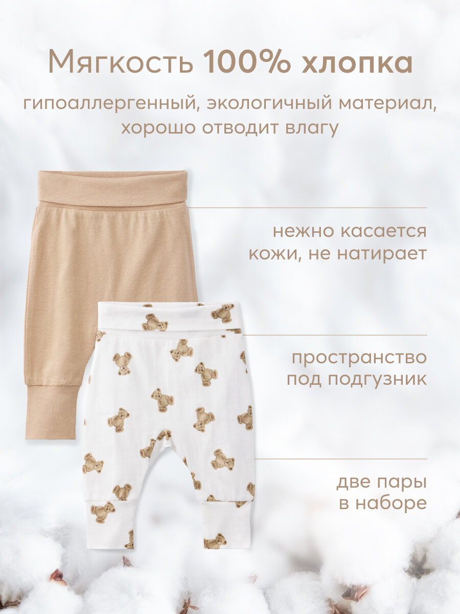 90113, Ползунки (штанишки) для новорожденных Happy Baby, для мальчика, девочки набор 2 шт, бежевые с мишками и коричневые, рост 68 1 158 ₽