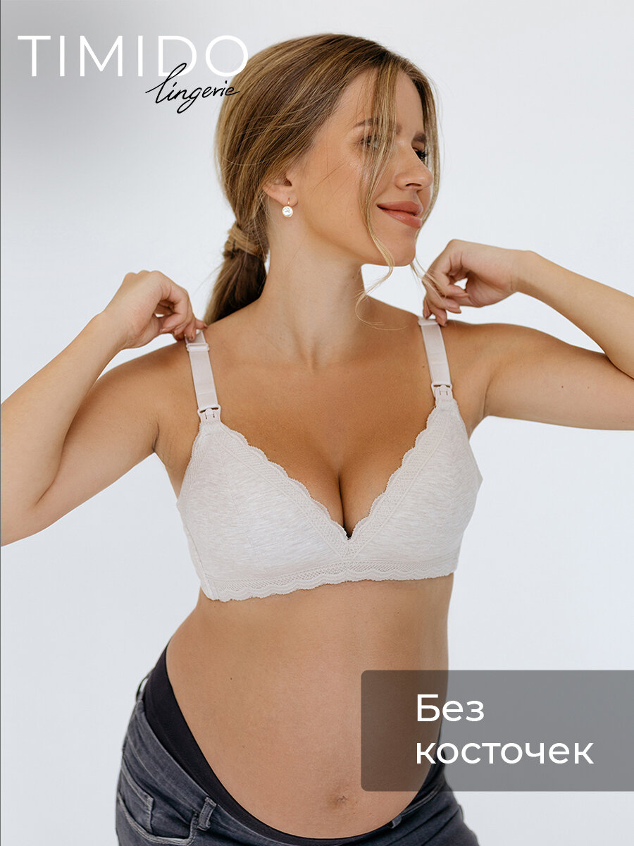 Бюстгальтер TIMIDO 90007 для кормления хлопковый с поролоновой чашечкой серый 75C 1 027 ₽
