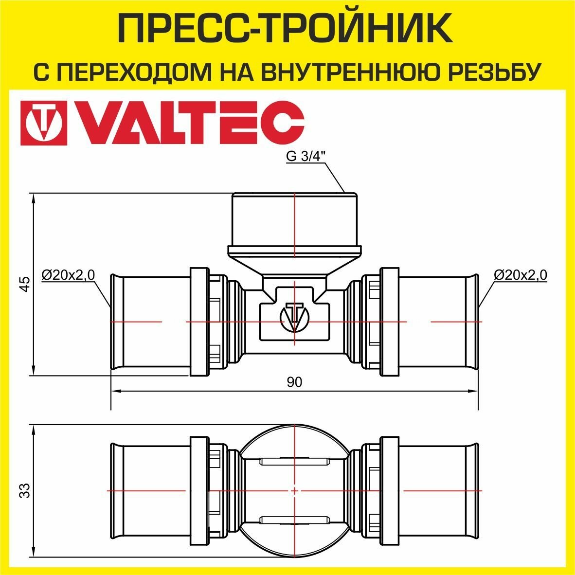 Тройник VALTEC (VTm.232.N.200520) 20(пресс) х 3/4 ВР(г) х 20(пресс) информация: