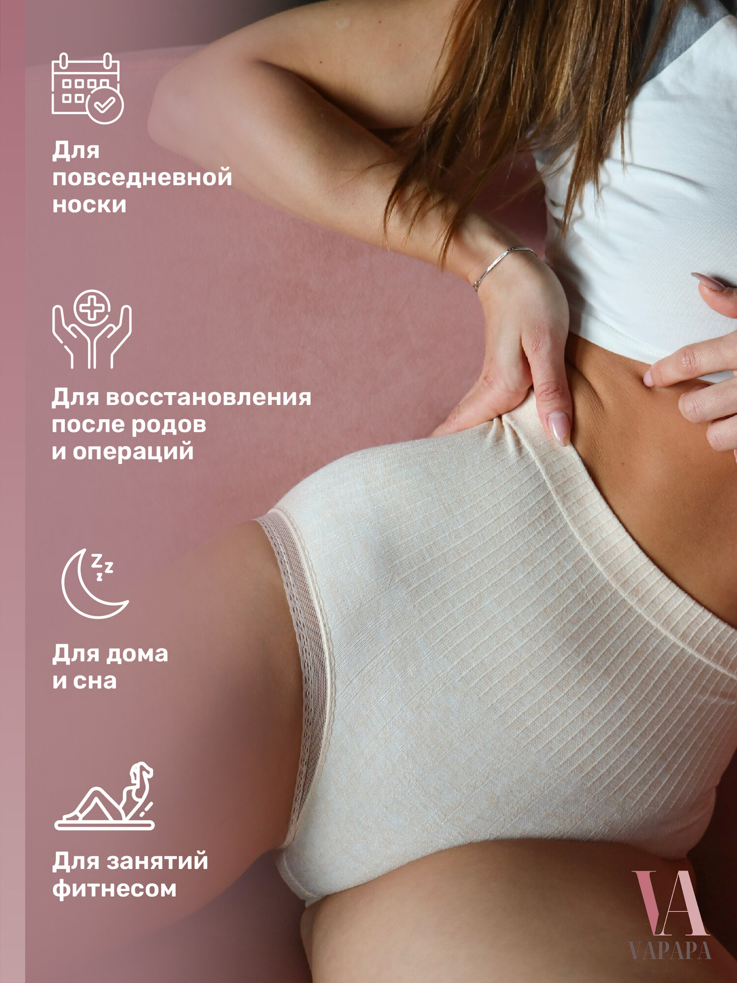 Трусы женские с высокой талией Пудровые / трусы для беременных хлопок, послеродовое / VAPAPA, 1 шт 440 ₽