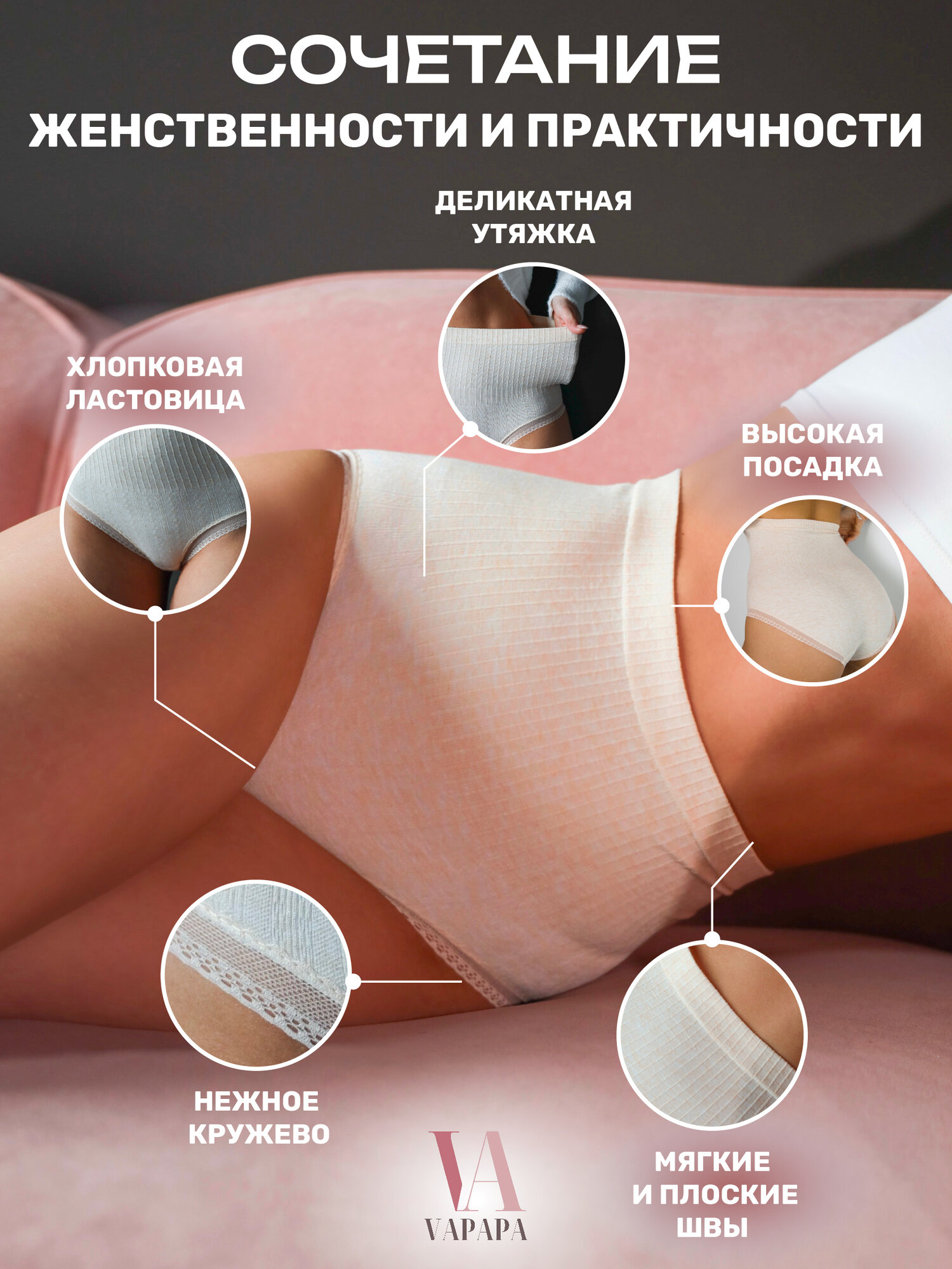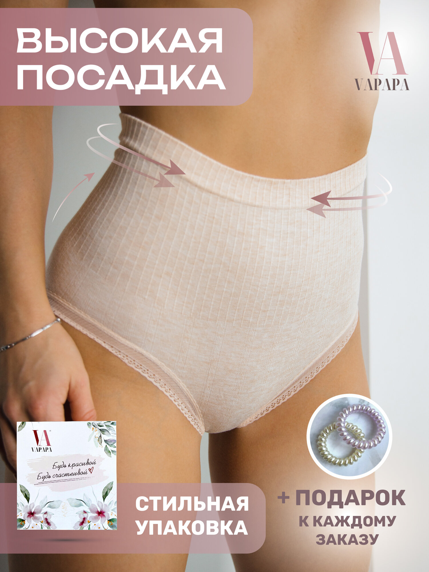 Отзывы на Трусы VAPAPA Трусы женские высокая талия, слипы хлопок, 1шт, размер 42-46, бежевый