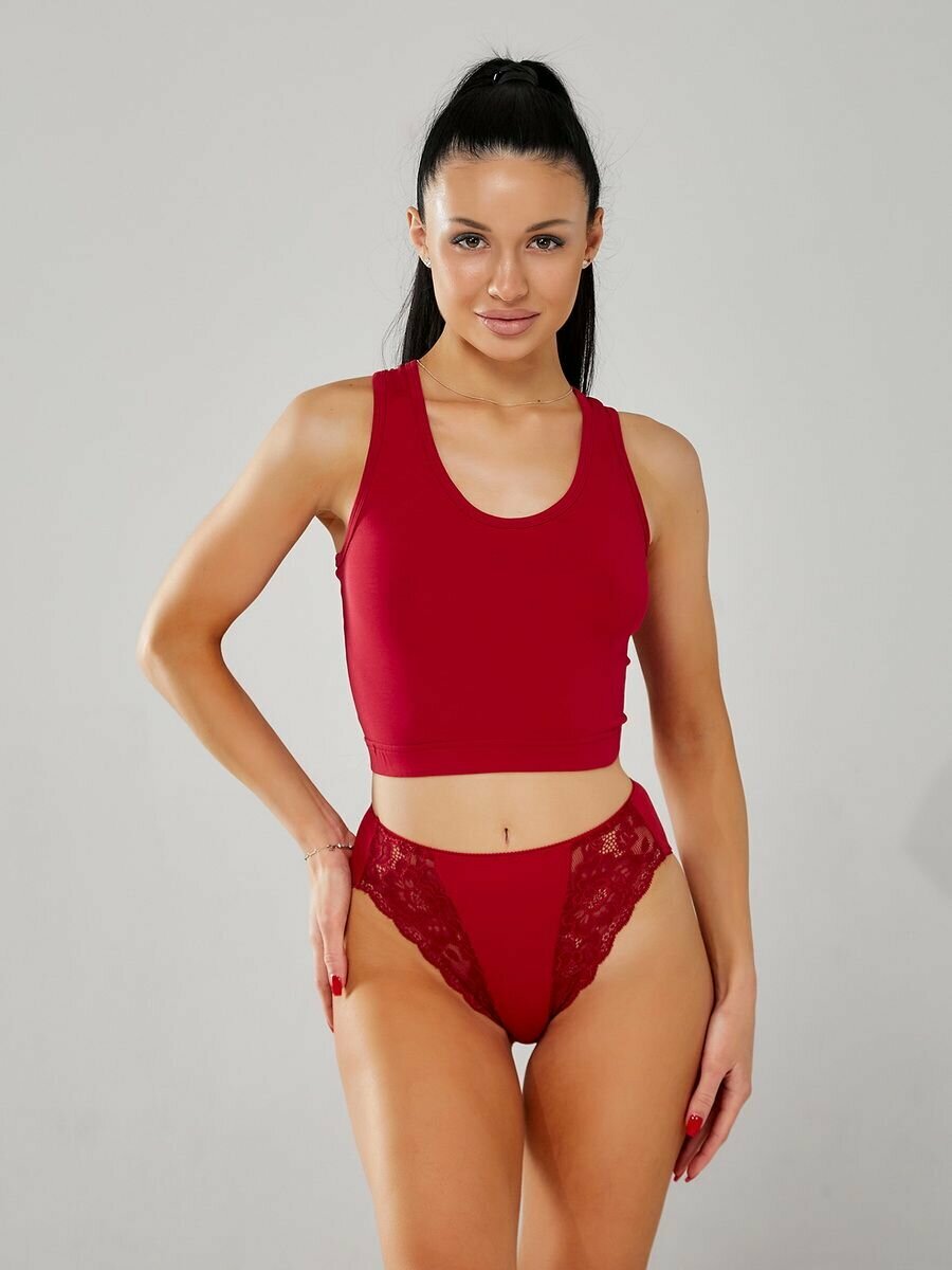 Трусы SeNso Трусы-миди женские с высокой посадкой Senso.Слипы из хлопка с высокой талией и кружевными вставками, размер 48, марсала 322 ₽