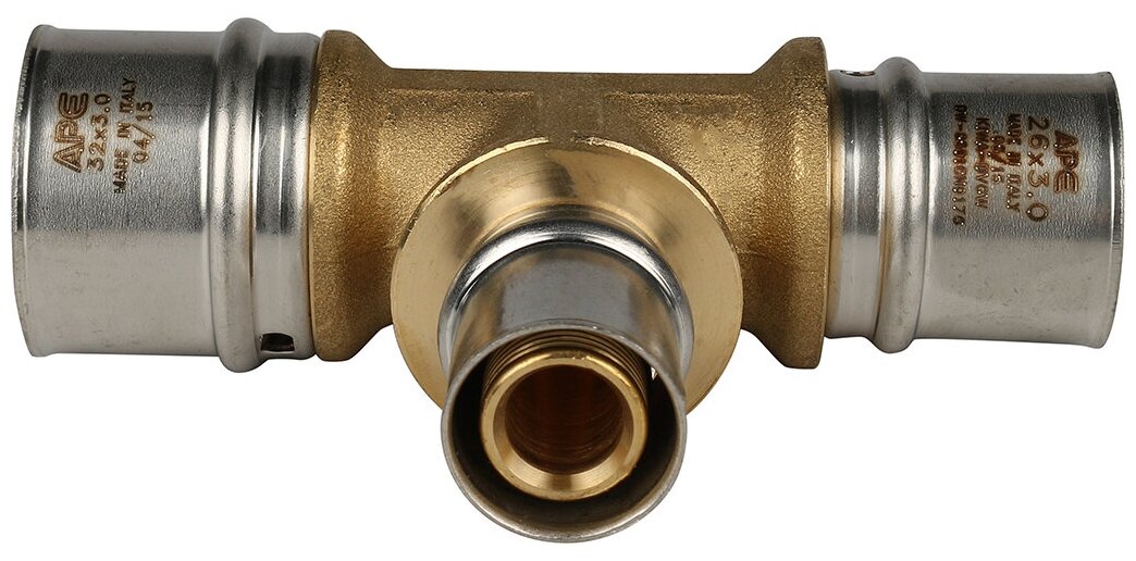 Тройник переходной 32х20х26 для металлопластиковых труб прессовой ФУМ лента 10м