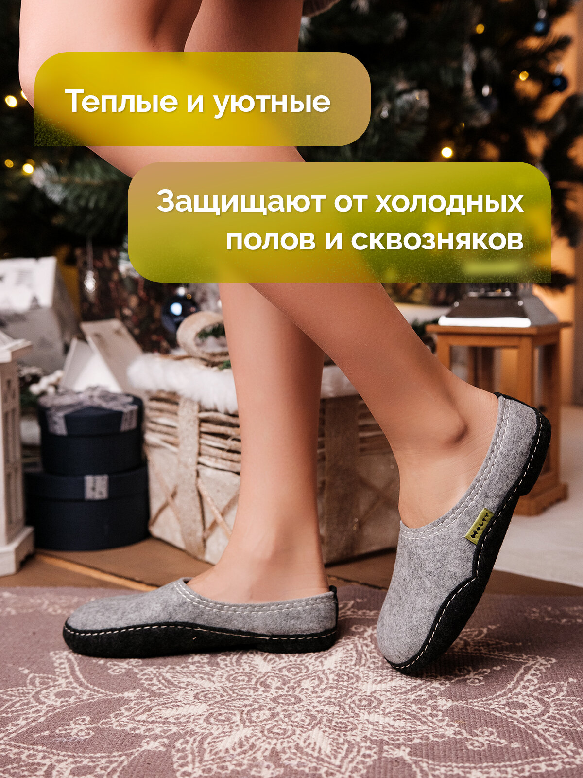 Тапочки войлочные Холти "Комфортные" теплые домашние женские тапки из искусственного войлока (36), светло-серый 1 999 ₽