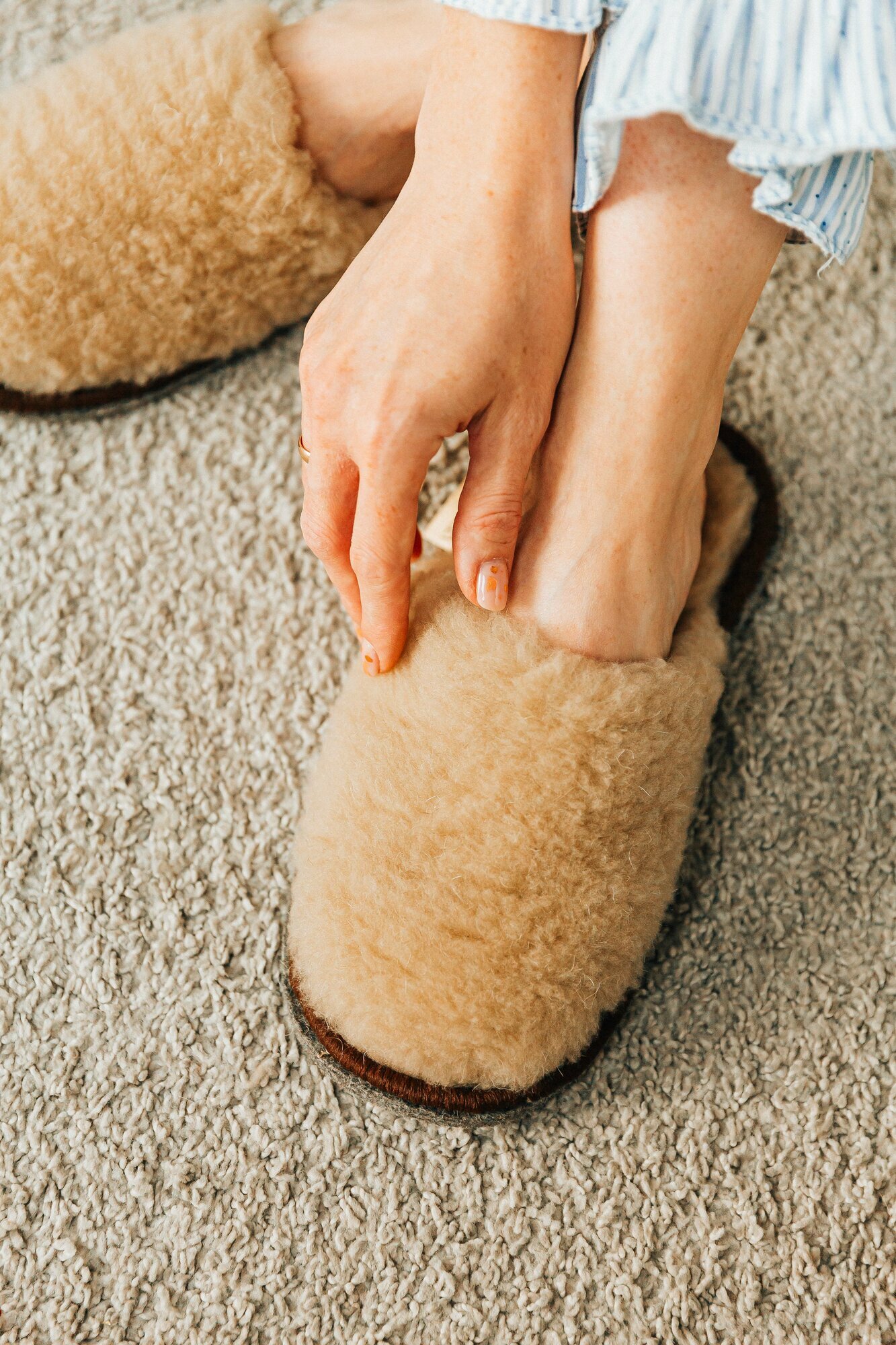 Тапочки домашние меховые женские из овечьей шерсти закрытые бежевые 569 ₽