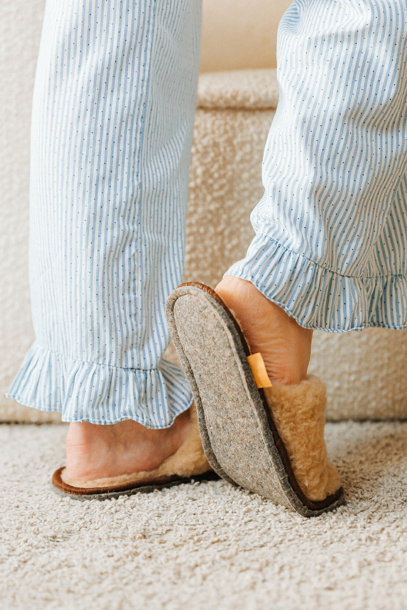 Тапочки домашние меховые женские из овечьей шерсти закрытые бежевые 569 ₽