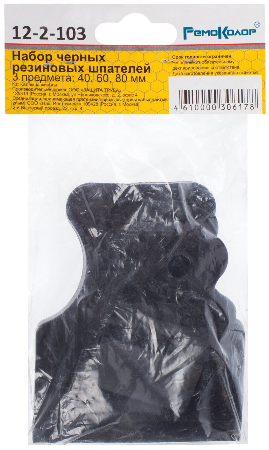 Набор Ремоколор черных резиновых шпателей, 3 предмета: 40, 60, 80 мм /уп,/ 12-2-103