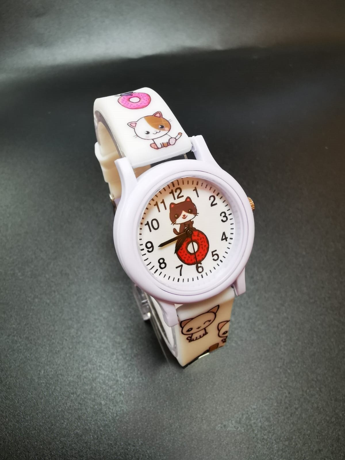 Наручные детские часы, часики для девочки, котята фиолетовый