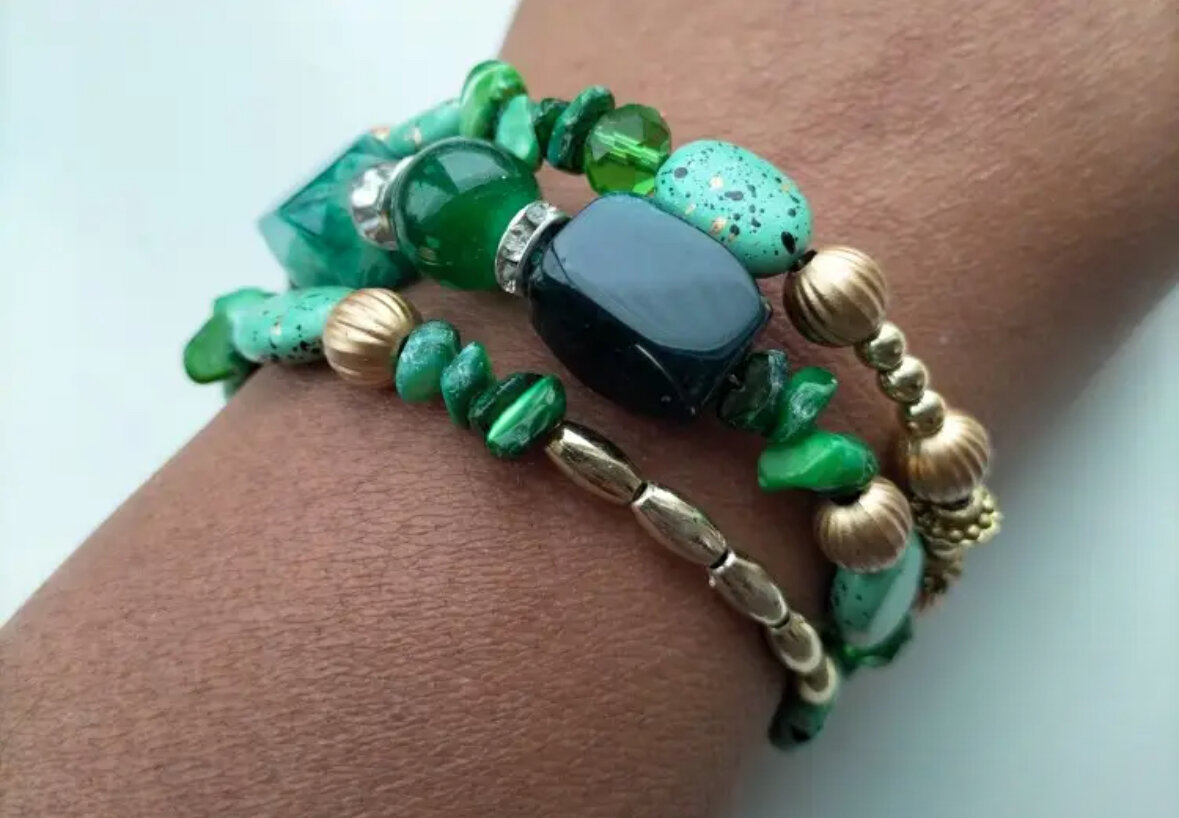 Браслет из натуральных камней. Агат зеленый.
