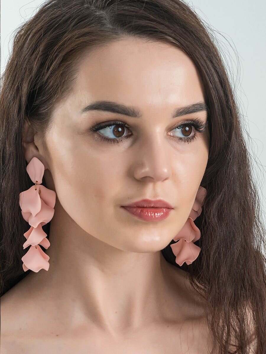 Серьги длинные висячие вечерние женские стильные персиковые сережки тренд 2024 499 ₽