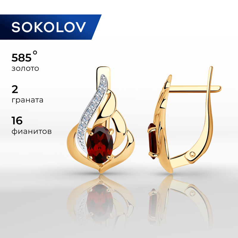 Серьги SOKOLOV из золота с гранатами и фианитами 728283