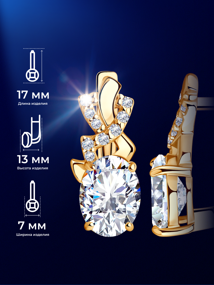 Отзывы на Серьги SOKOLOV, серебро, 925 проба, золочение, фианит, длина 1.7 см, , бесцветный