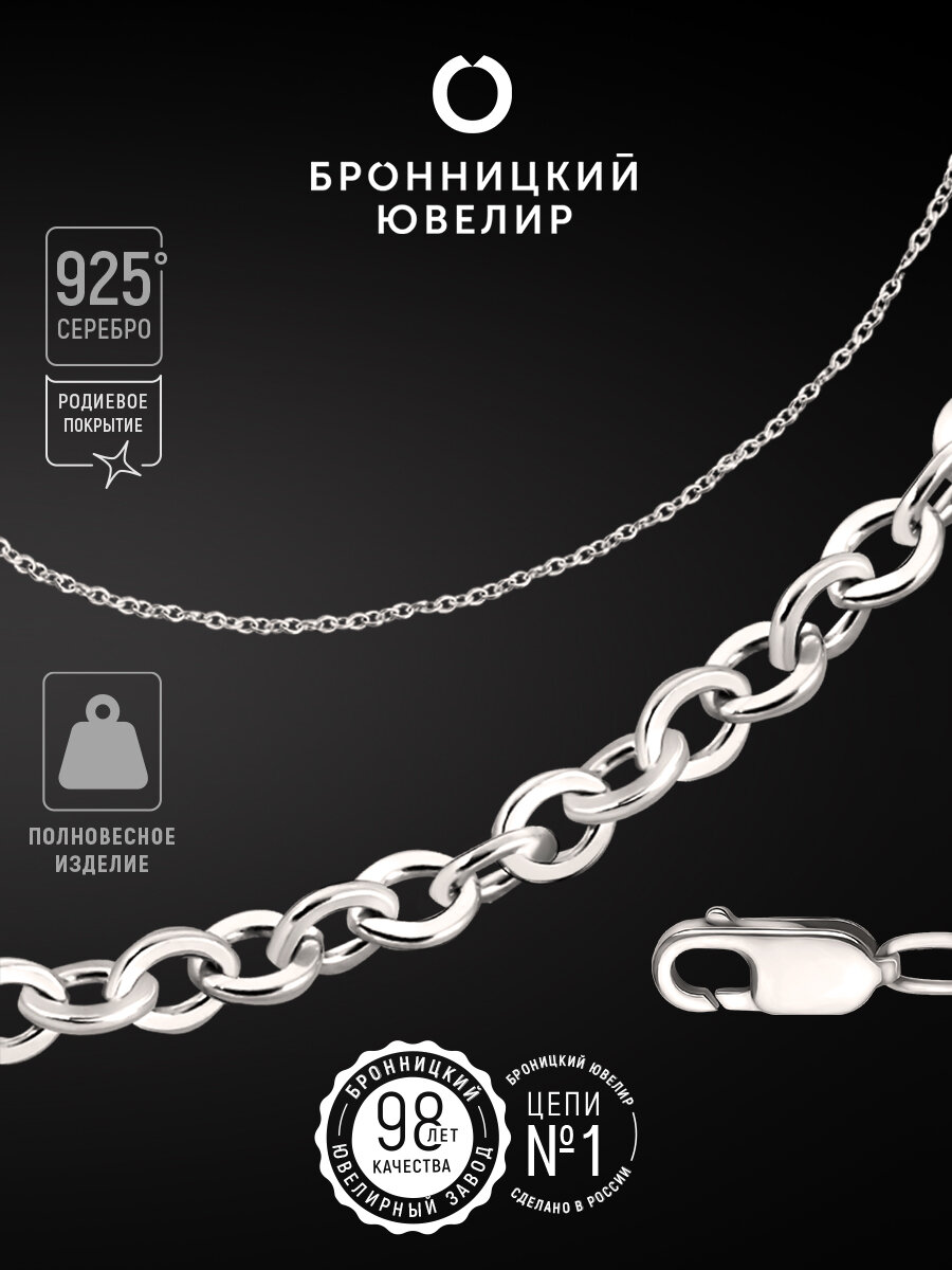 Цепь Бронницкий Ювелир, серебро, 925 проба, родирование, длина 55 см, средний вес 2.4 г, , серебристый информация: