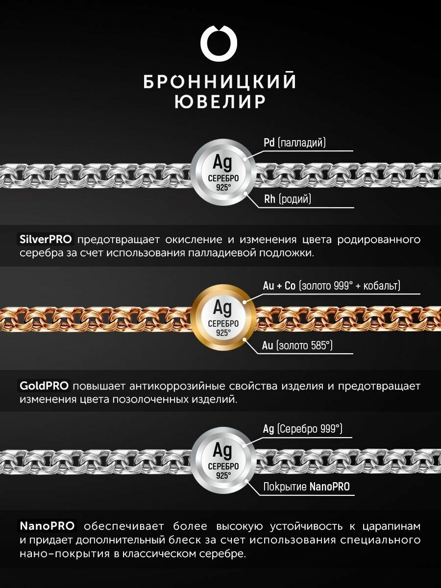 Цепь Бронницкий Ювелир, серебро, 925 проба, родирование, длина 55 см, средний вес 8.28 г, , серебристый 2 999 ₽
