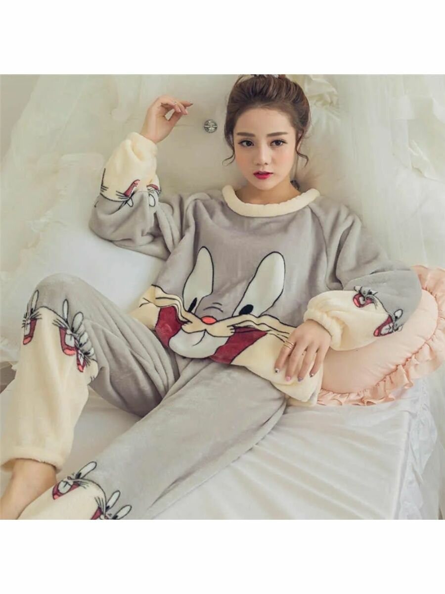 Теплая махровая пижама Кигуруми кролик серый, (42-44) 2 233 ₽
