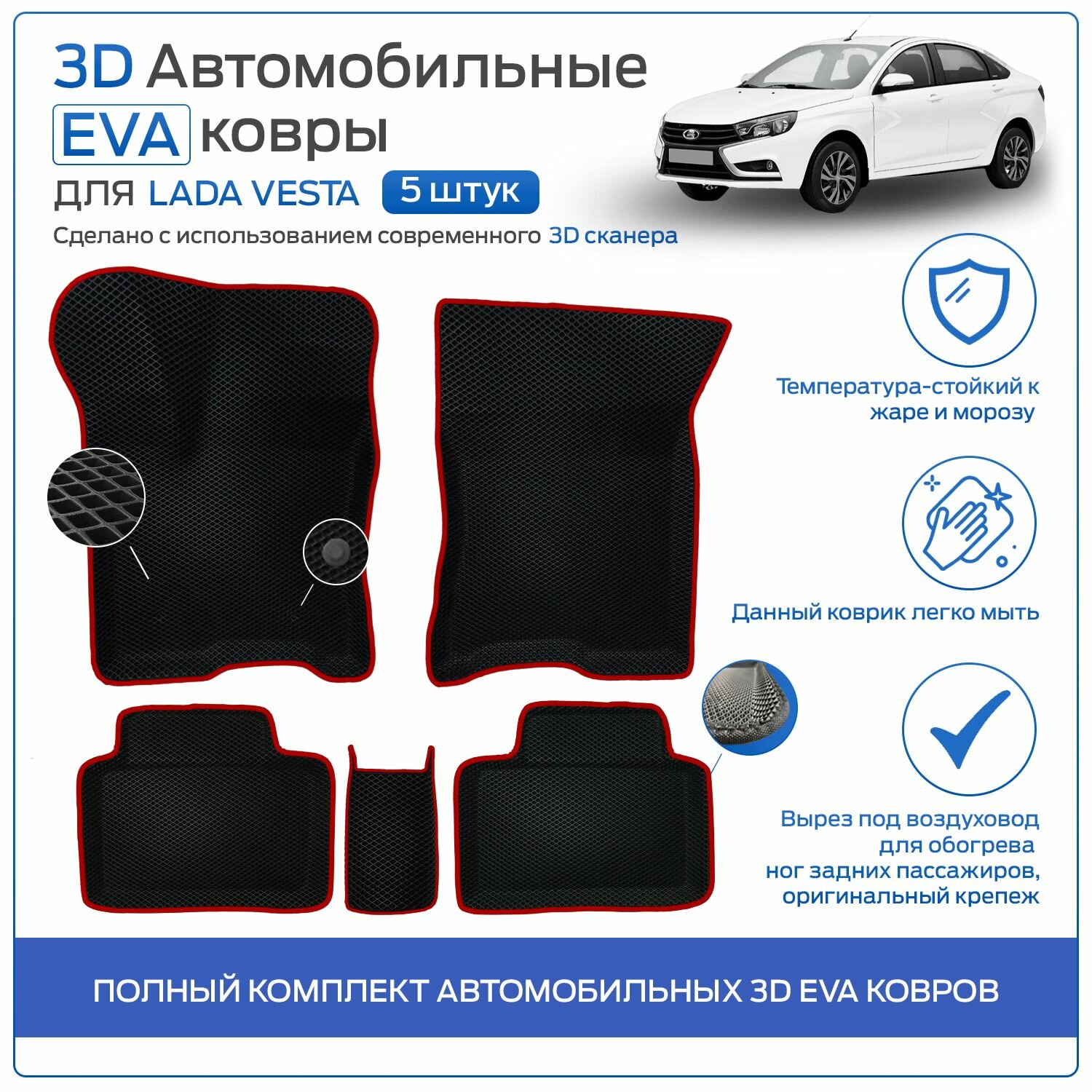 10 цен на Пресс-EVA 3Д Ковры Лада Веста (Ева, эва, коврики с бортами) Lada Vesta / Красные