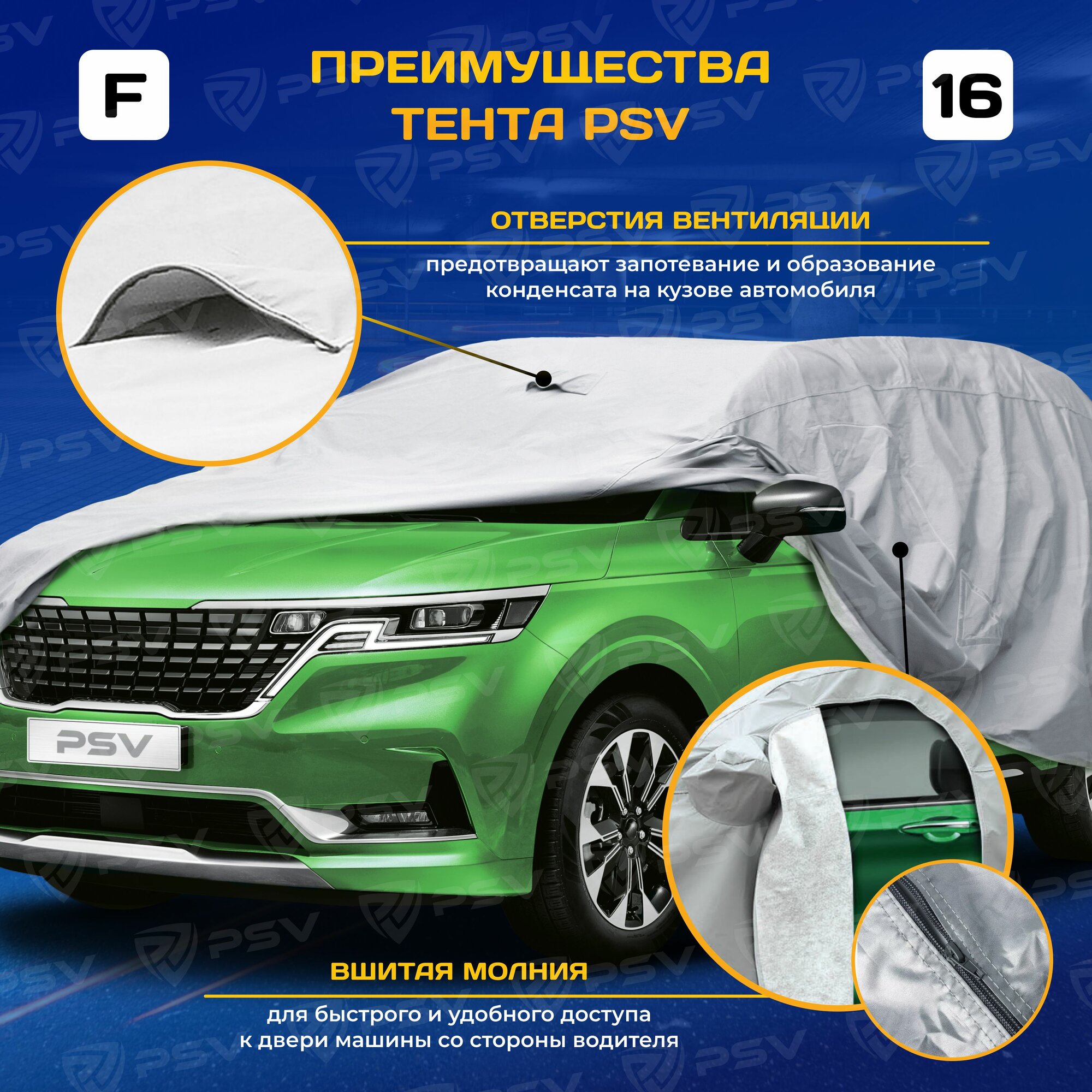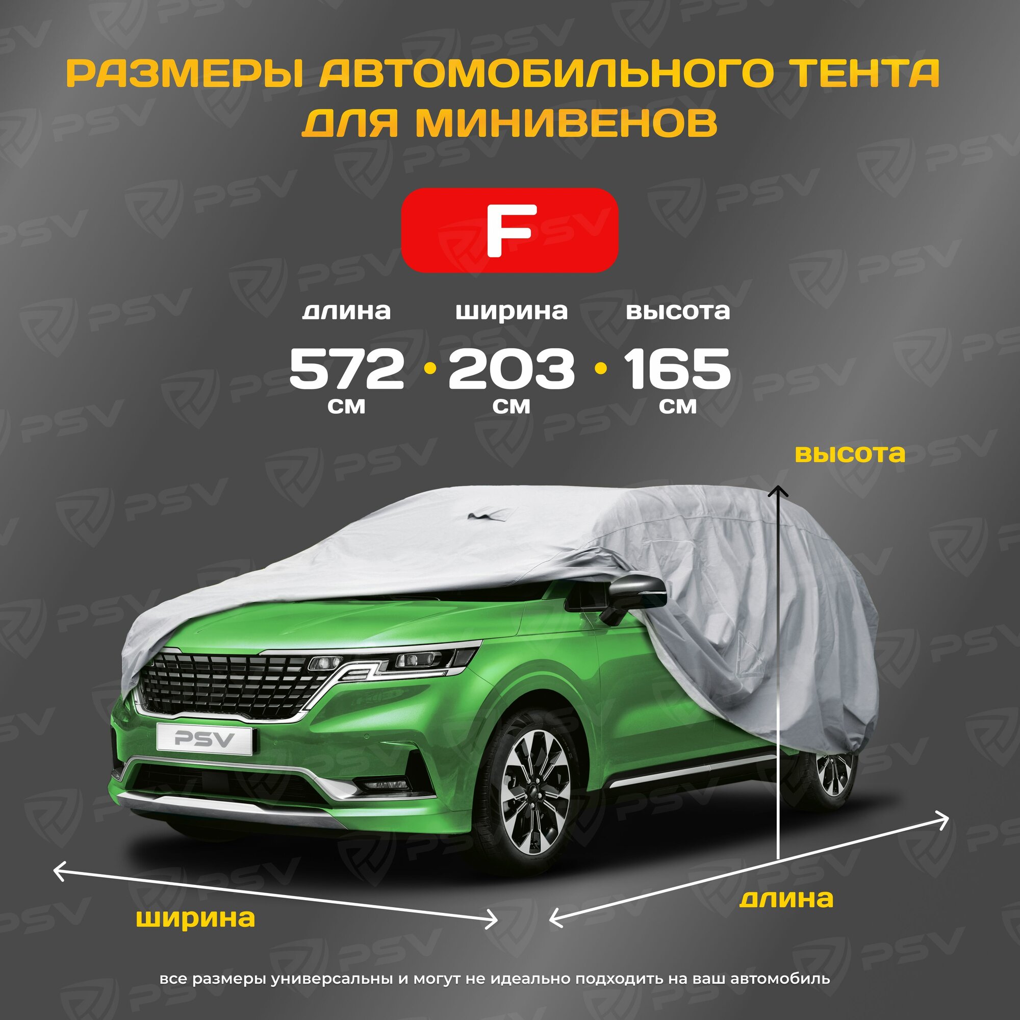 Тент на машину для минивэнов PSV c молнией, размер F, двухслойный с мягкой подкладкой информация: