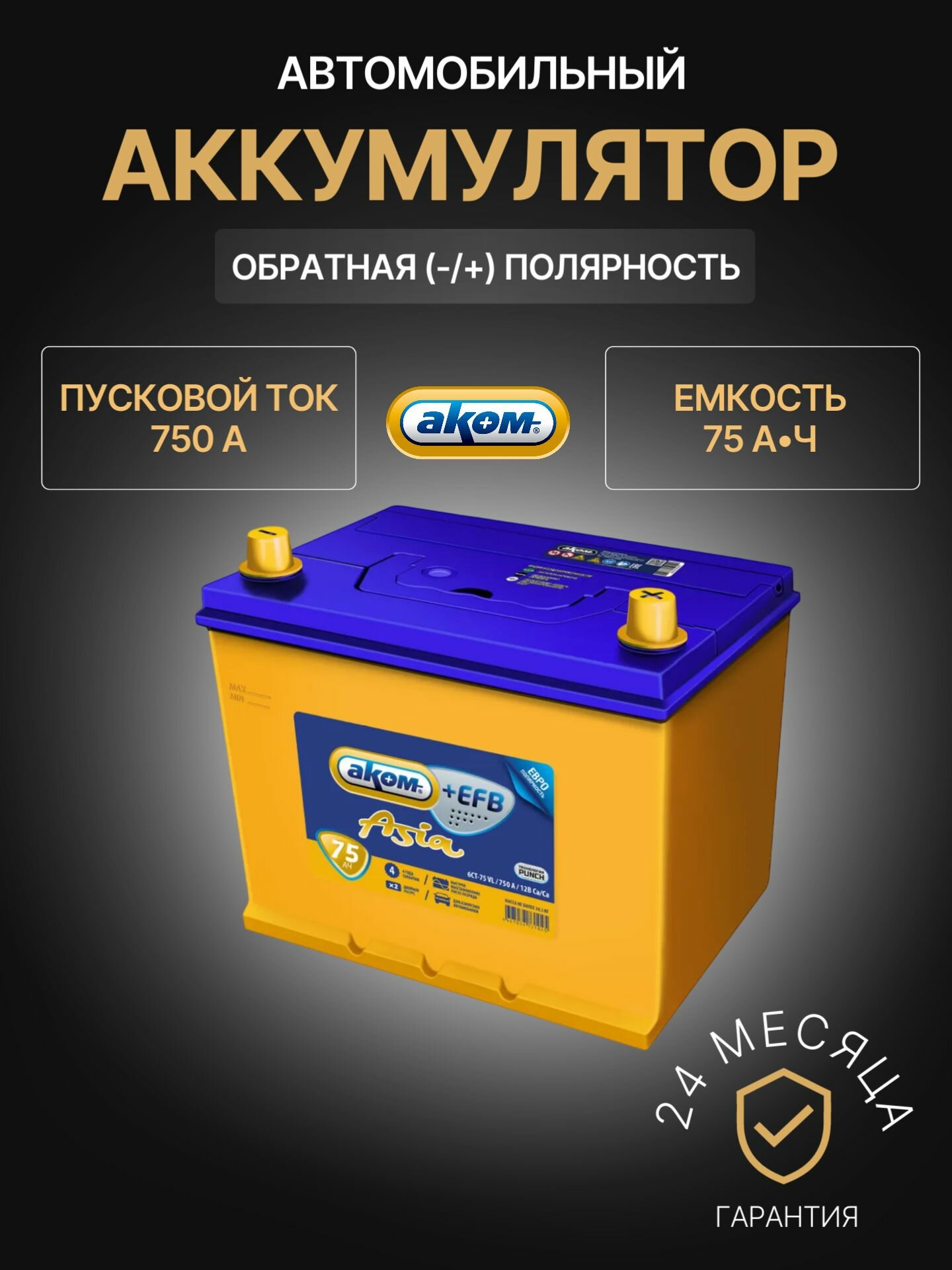 Аккумулятор автомобильный АКОМ Asia+EFB 75 R+ 12В 75Ач 750А информация: