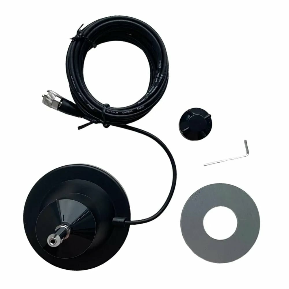 | Дополнительная информация | Максимальная мощность — 400 Вт, КСВ — 1.2:1, ширина полосы — 1 МГц, диаметр магнита — 123 мм, материал — нержавеющая сталь, кабель RG-58, разъём — PL-259, ветровая нагрузка — 190 км/ч |