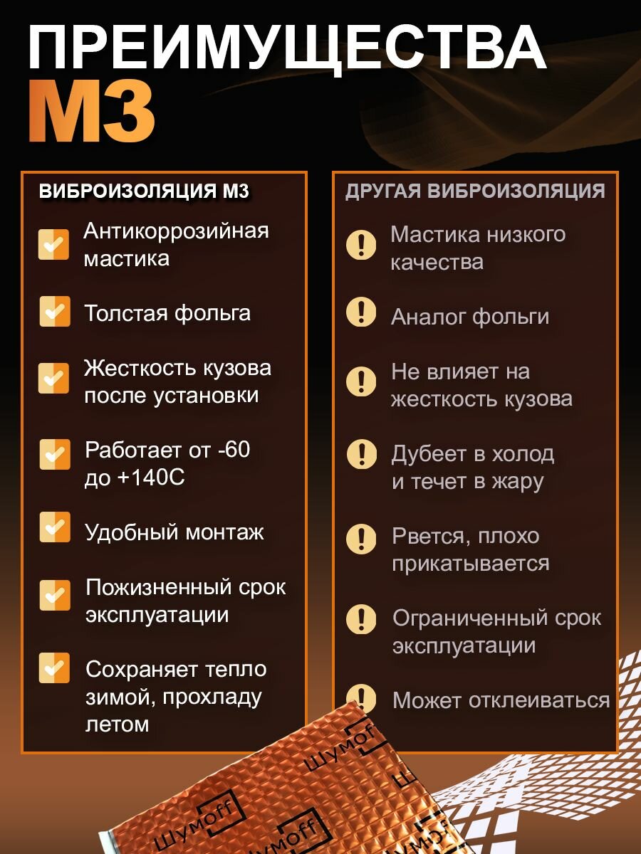 10 цен на Виброизоляция Шумофф М3 - 8 листов, размер 27см. x 37см, толщина 3 мм. Шумоизоляция для автомобиля: дверей крыши потолка пола салона багажника капота канализационных труб