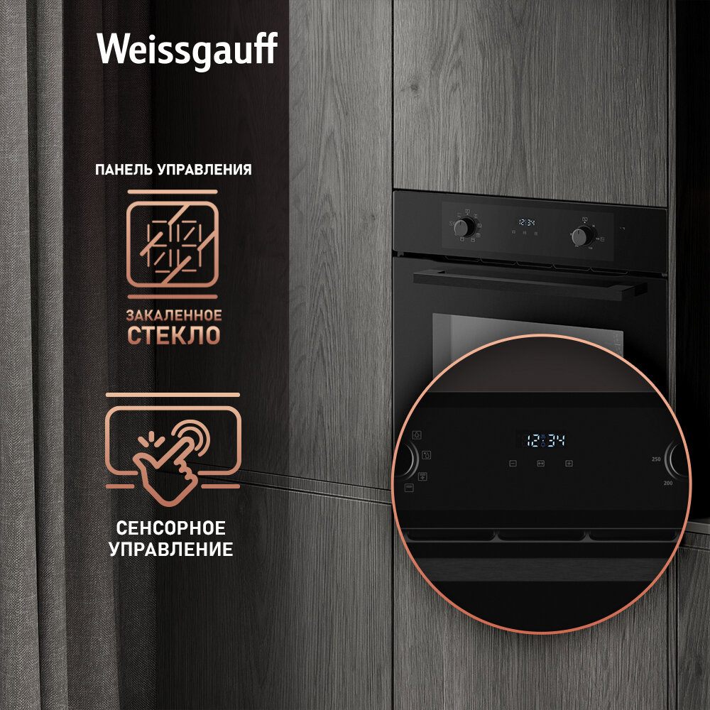 Электрический духовой шкаф Weissgauff EOV 676 SB Black Edition, конвекция и гриль, 60 см, 3 года гарантии