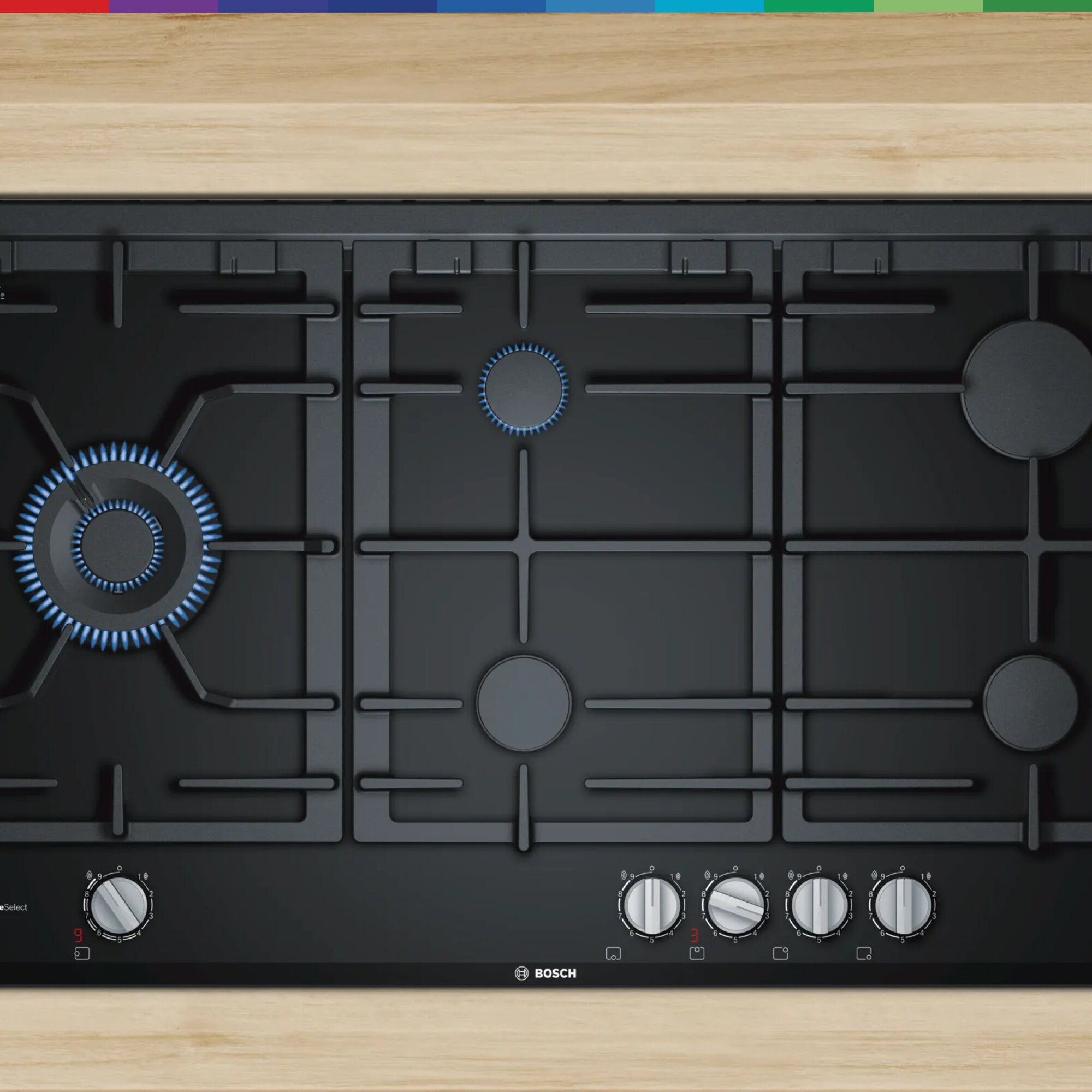 Отзывы на Газовая варочная поверхность Bosch PRS9A6D70M, 5 конфорок , закаленное стекло, электроподжиг, газ-контроль, черный