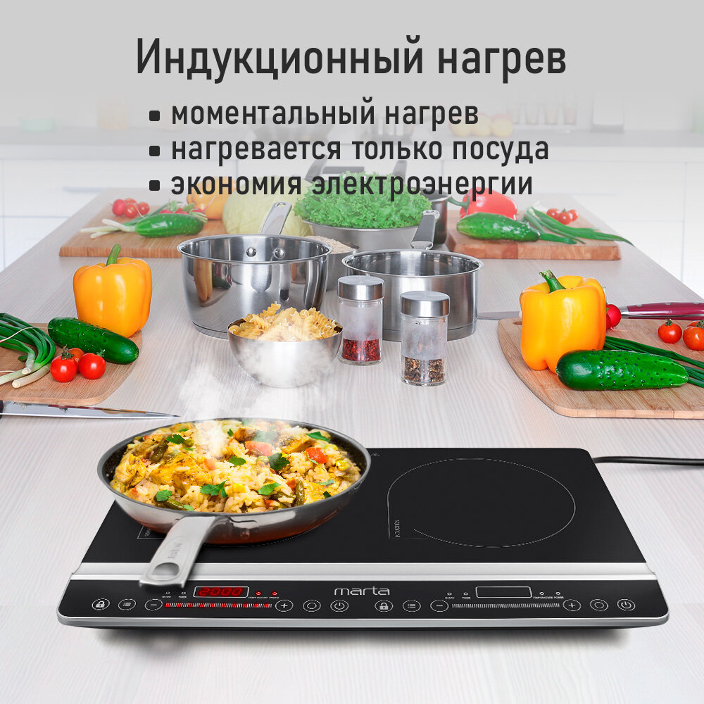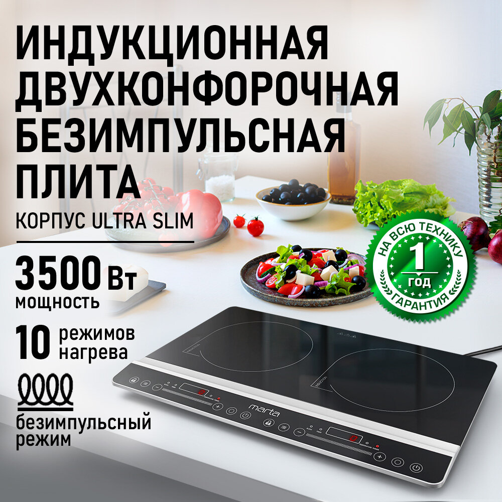 Плита индукционная электрическая MARTA MT-HP4222C черный жемчуг информация: