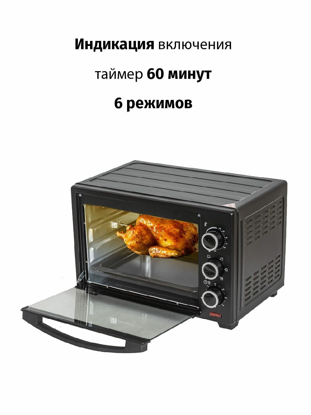 Печь электрическая SUPRA 26 литров с грилем, 6 режимов работы / мини-печь с вертелом, таймер 60 минут, 1600 Вт