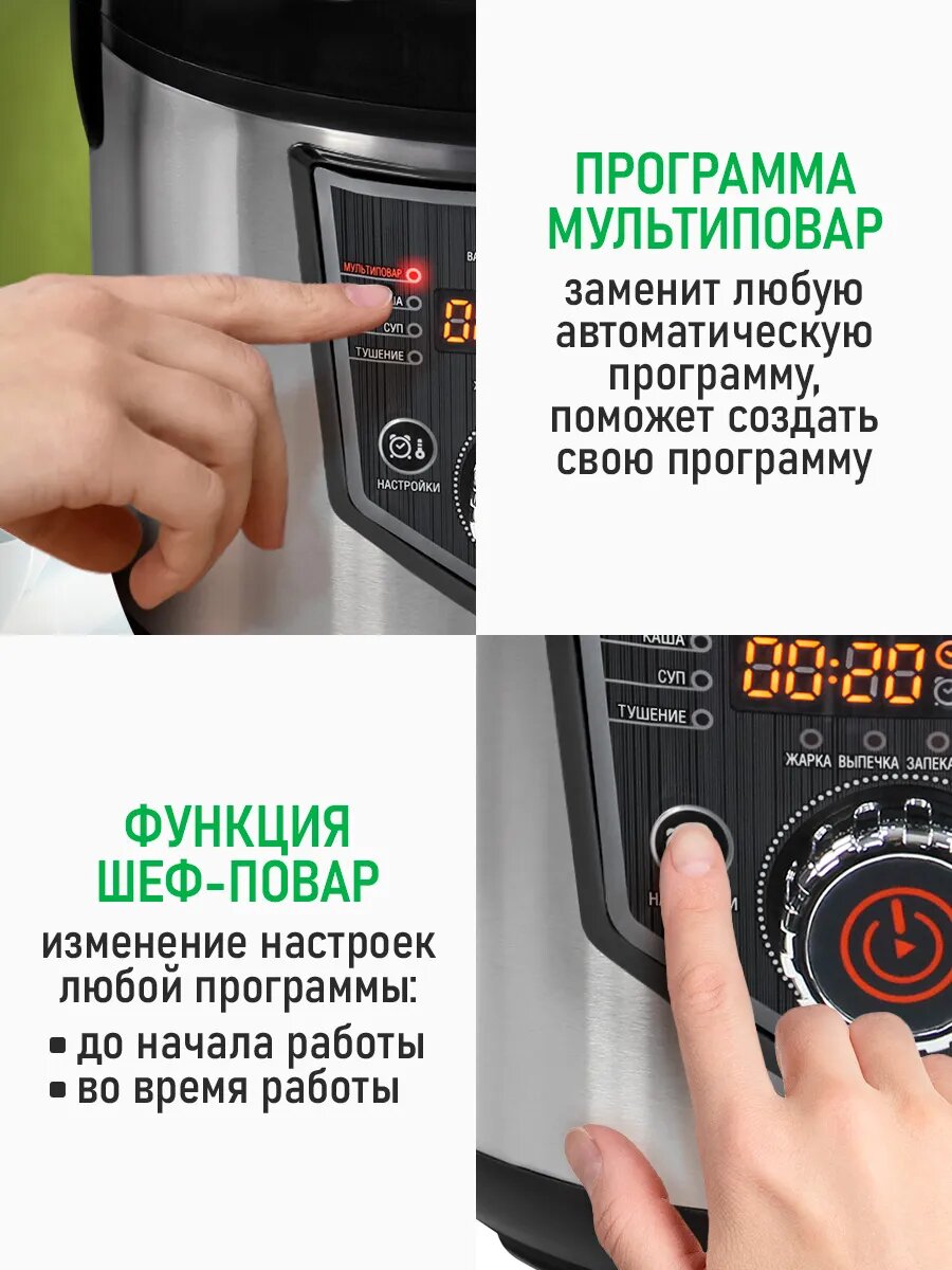 | Программы | варка, выпечка, запекание, йогурт, крупа, мультиповар, плов, приготовление на пару, суп |