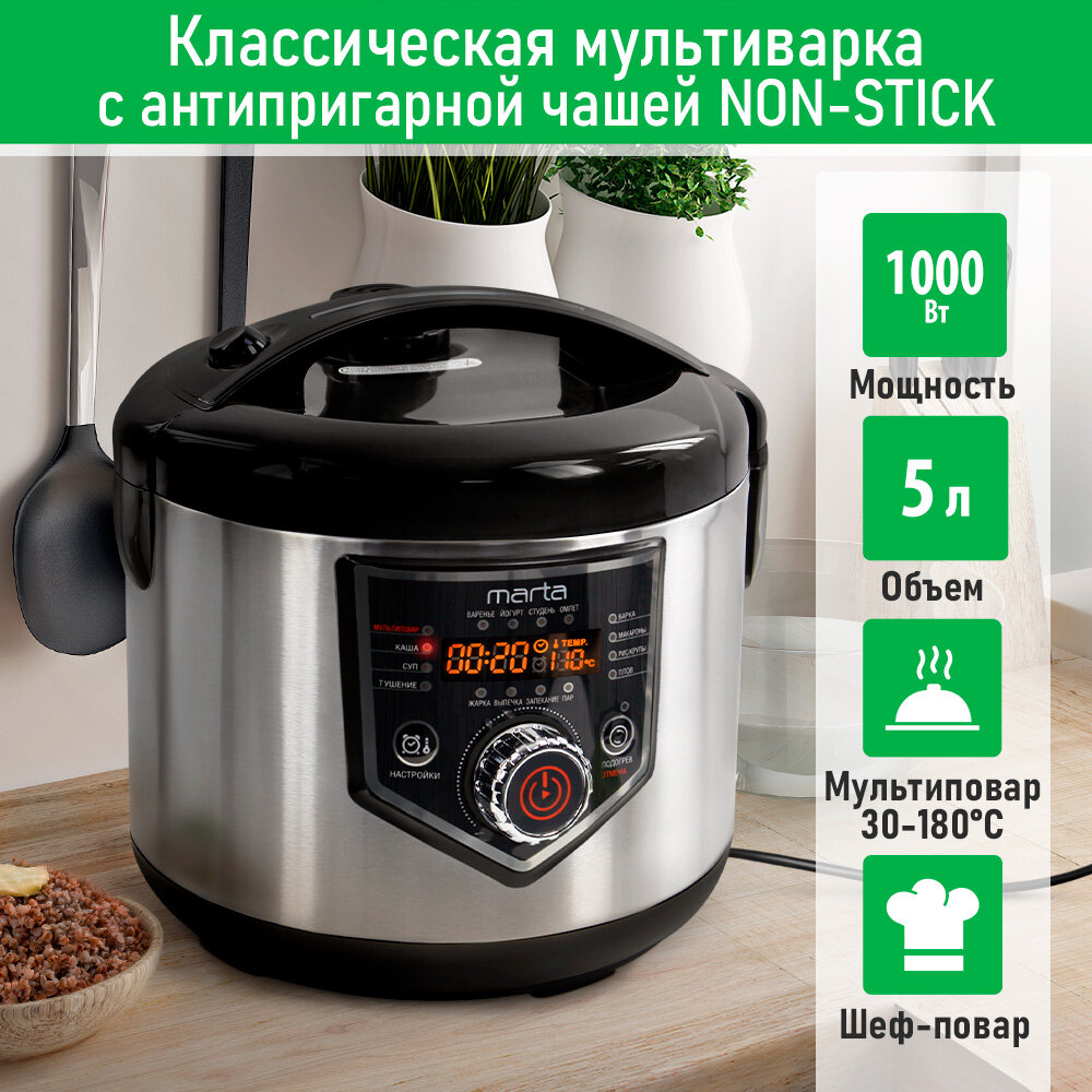 10 цен на Мультиварка MARTA MT-MC4336B черный/сталь