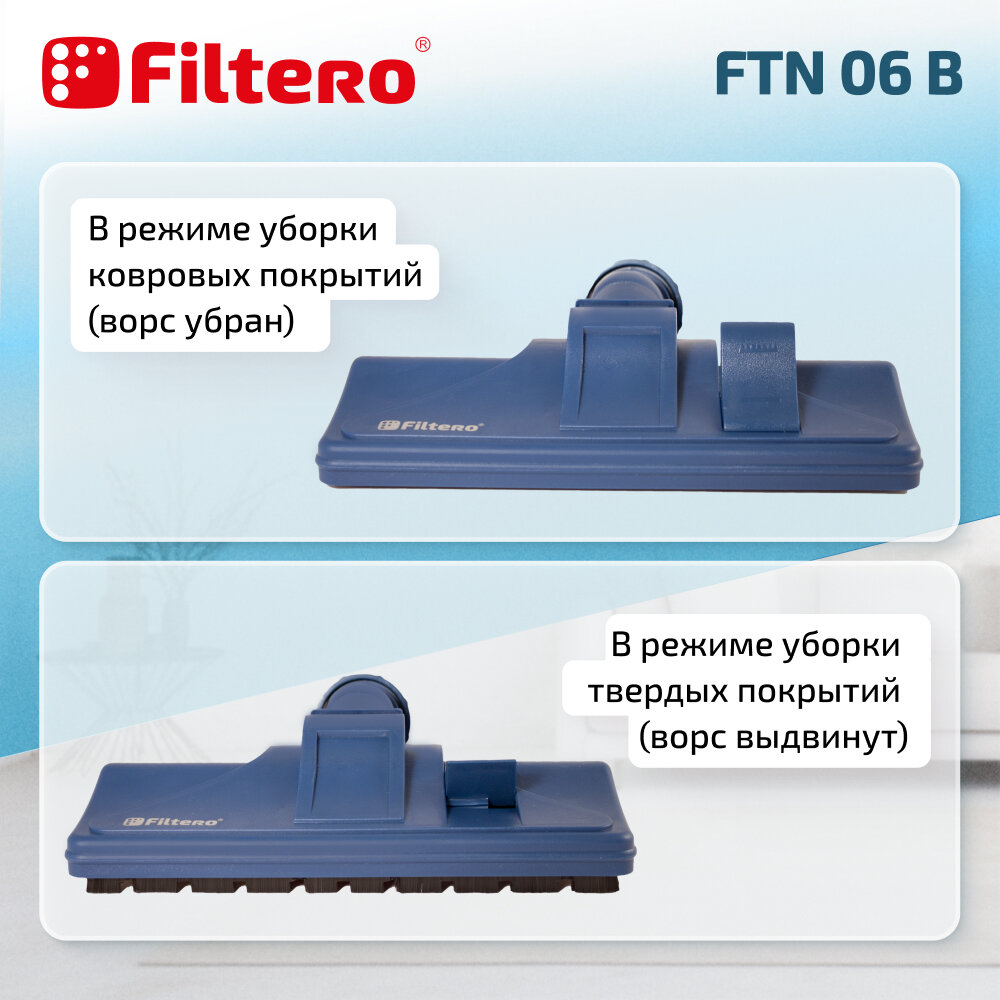 Насадка для пылесоса - пол/ковер с колесиками, комбинированная, универсальная, цвет синий - Filtero FTN 06 B информация: