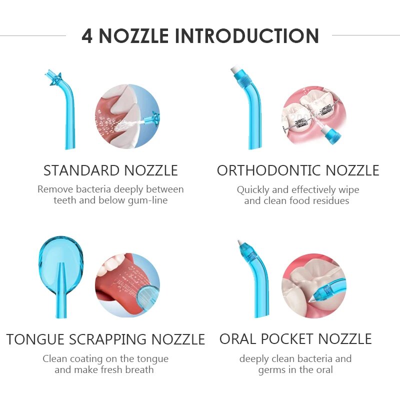 Ирригатор для полости рта. Портативный ирригатор. Ирригатор со сменными 4 насадками голубой