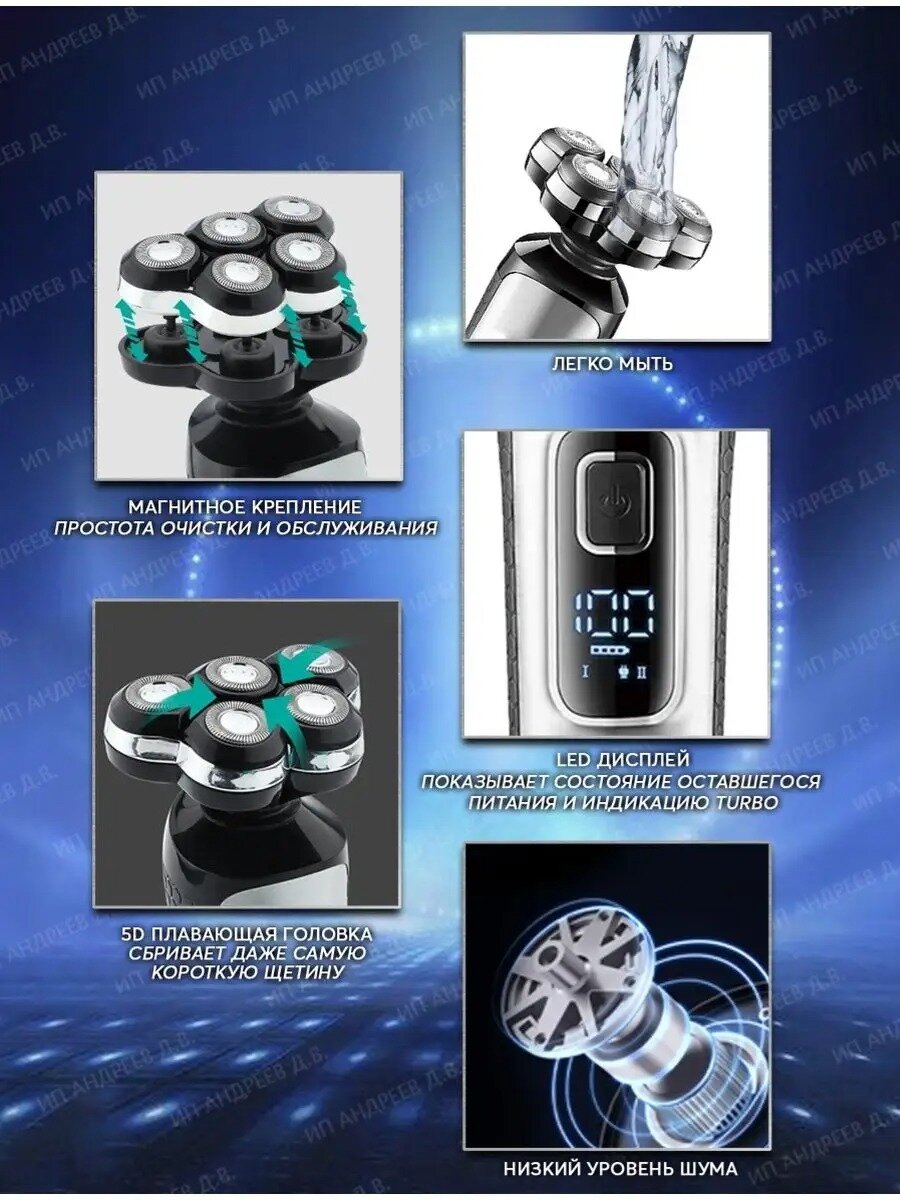 Профессиональная роторная электробритва мужская для сухого и влажного бритья/ домашняя/триммер/уход за волосами, бороды, усов/влагозащита/Шейвер/Роторная/черный информация: