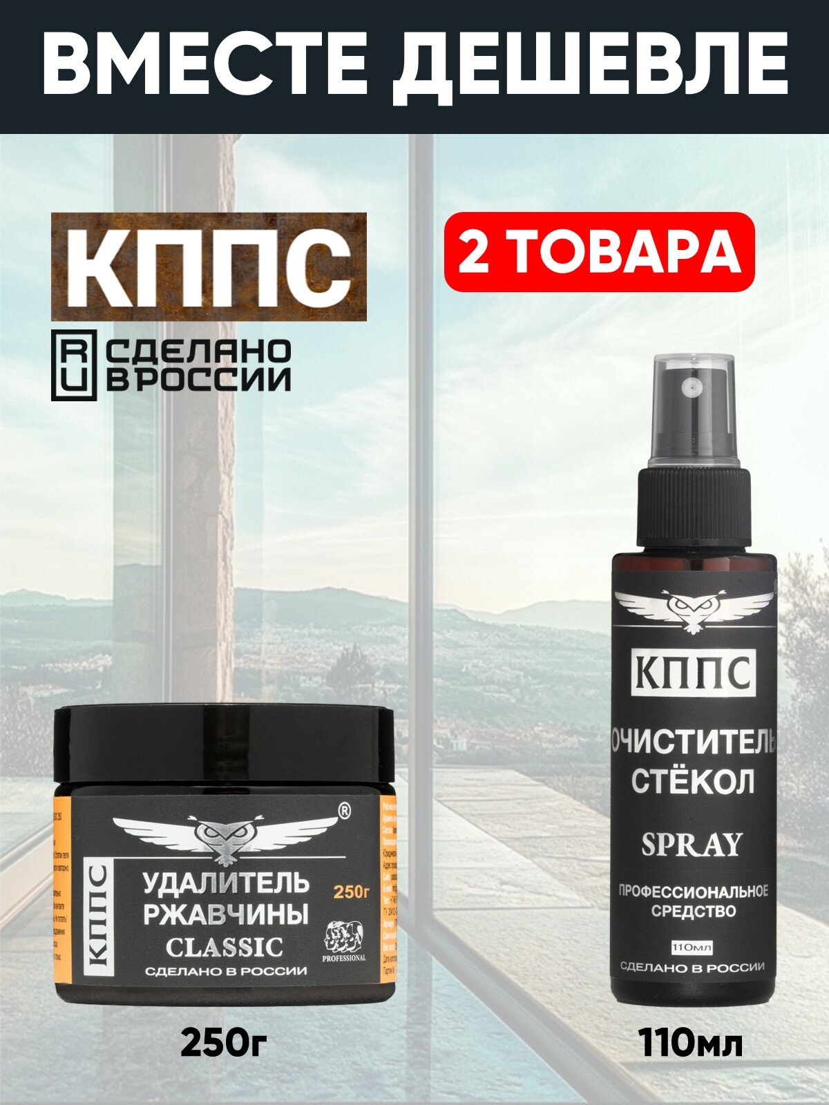 10 цен на Удалитель ржавчины КППС Classic 250г + Очиститель стёкол КППС 110мл