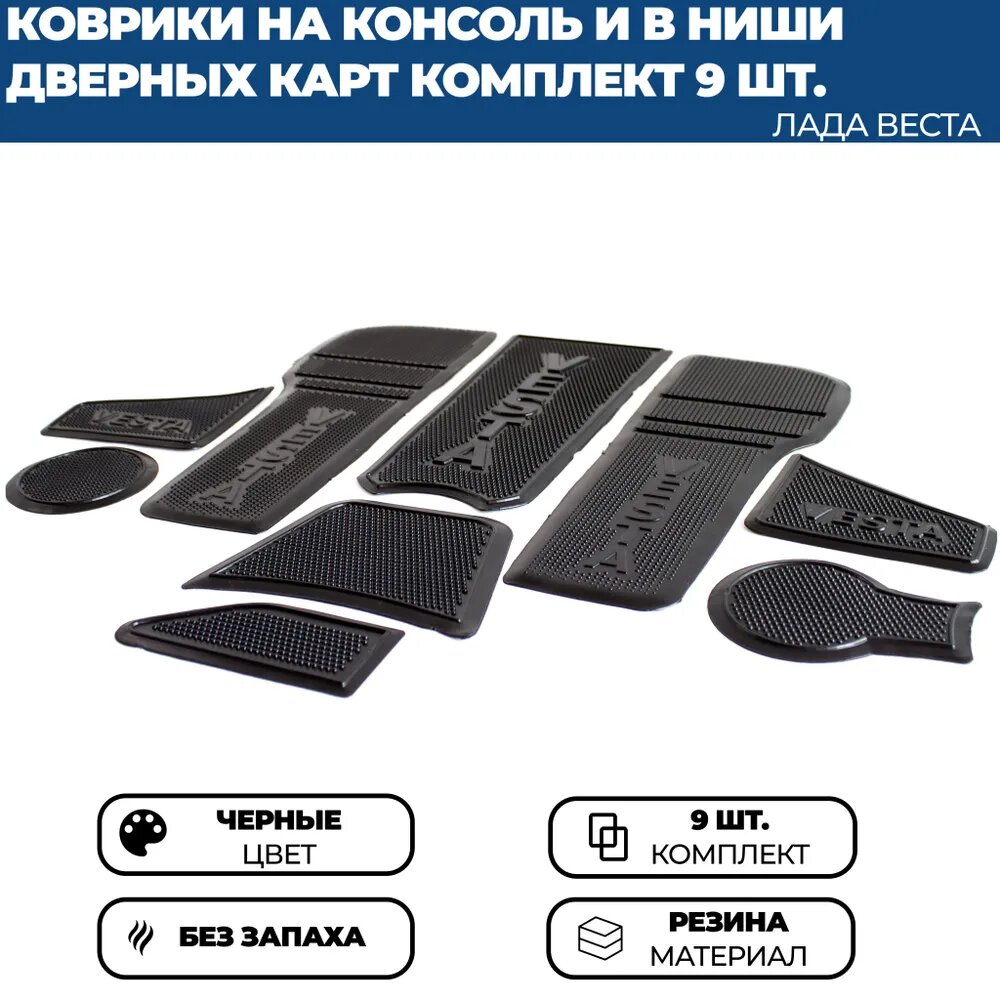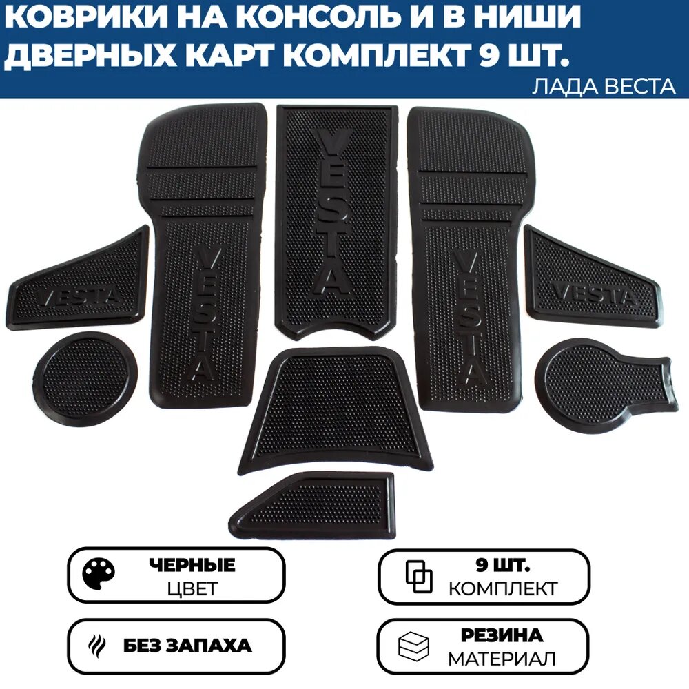 10 цен на Коврики на консоль и в ниши дверных карт Лада Веста, силиконовые, цвет черный