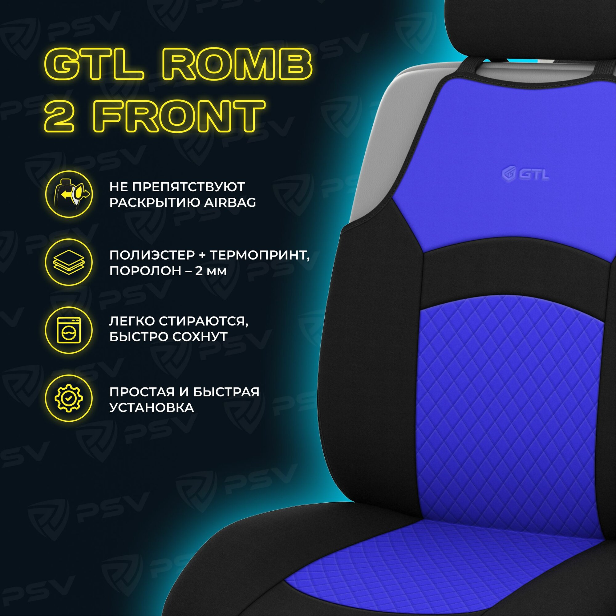 Чехлы в машину универсальные GTL Romb 2 FRONT (Синий), полиэстер, на передние сиденья информация: