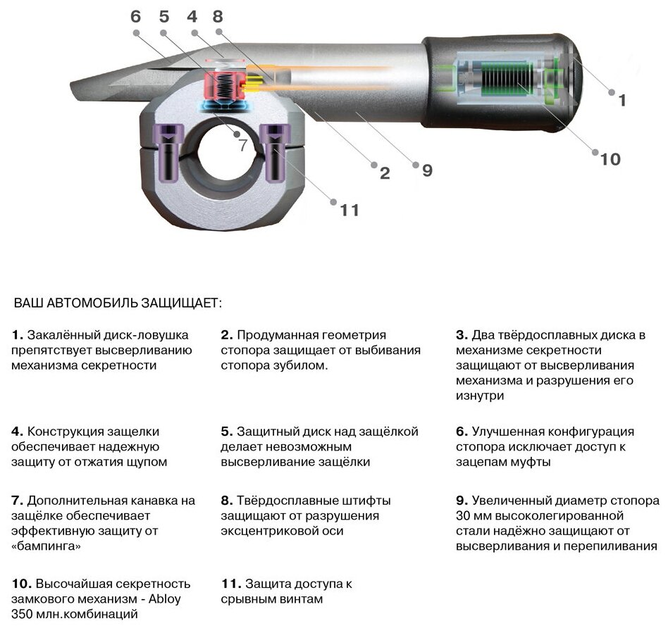 Блокиратор рулевого вала Гарант Блок UN.6. X Универсальное противоугонное устройство для авто с диаметром рулевого вала ф28,1мм