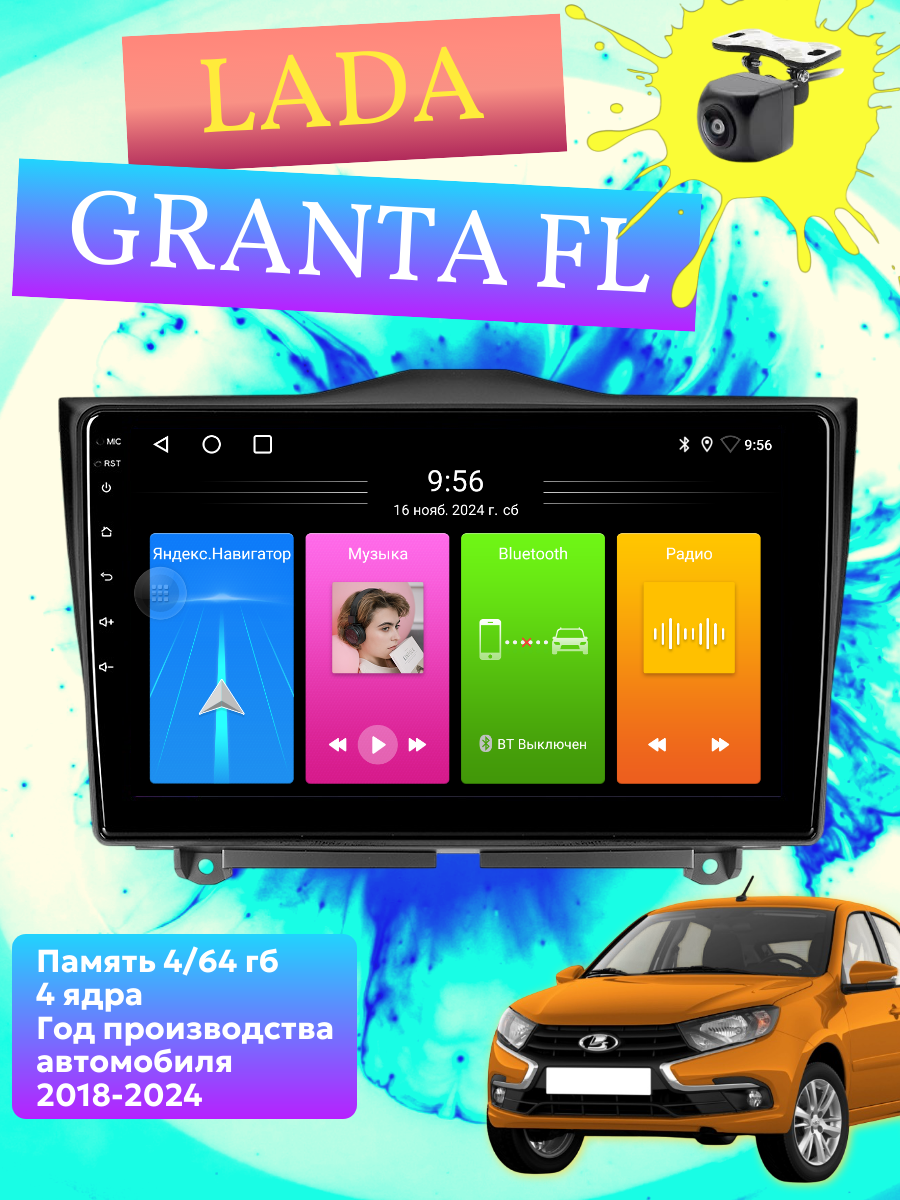Магнитола Лада Гранта LADA Granta FL 2018-2024, 4 ядерная 4/64 гб, камера заднего вида, CarPlay и Android Auto информация: