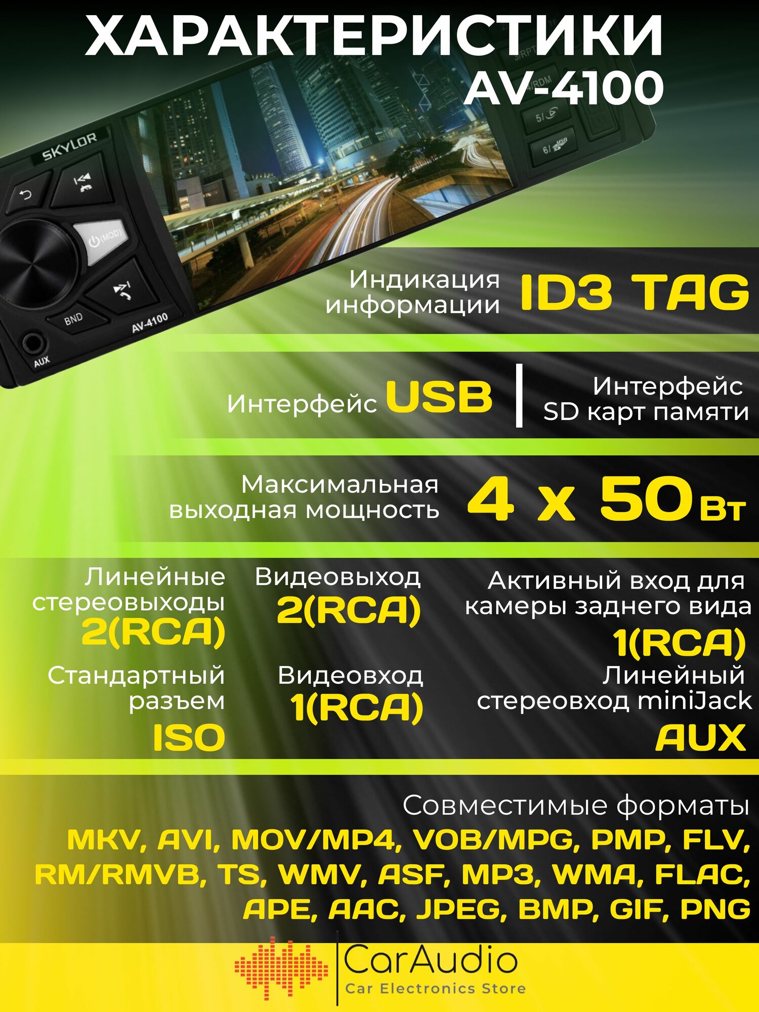 Автомагнитола Skylor AV-4100, 1DIN, Bluetooth информация: