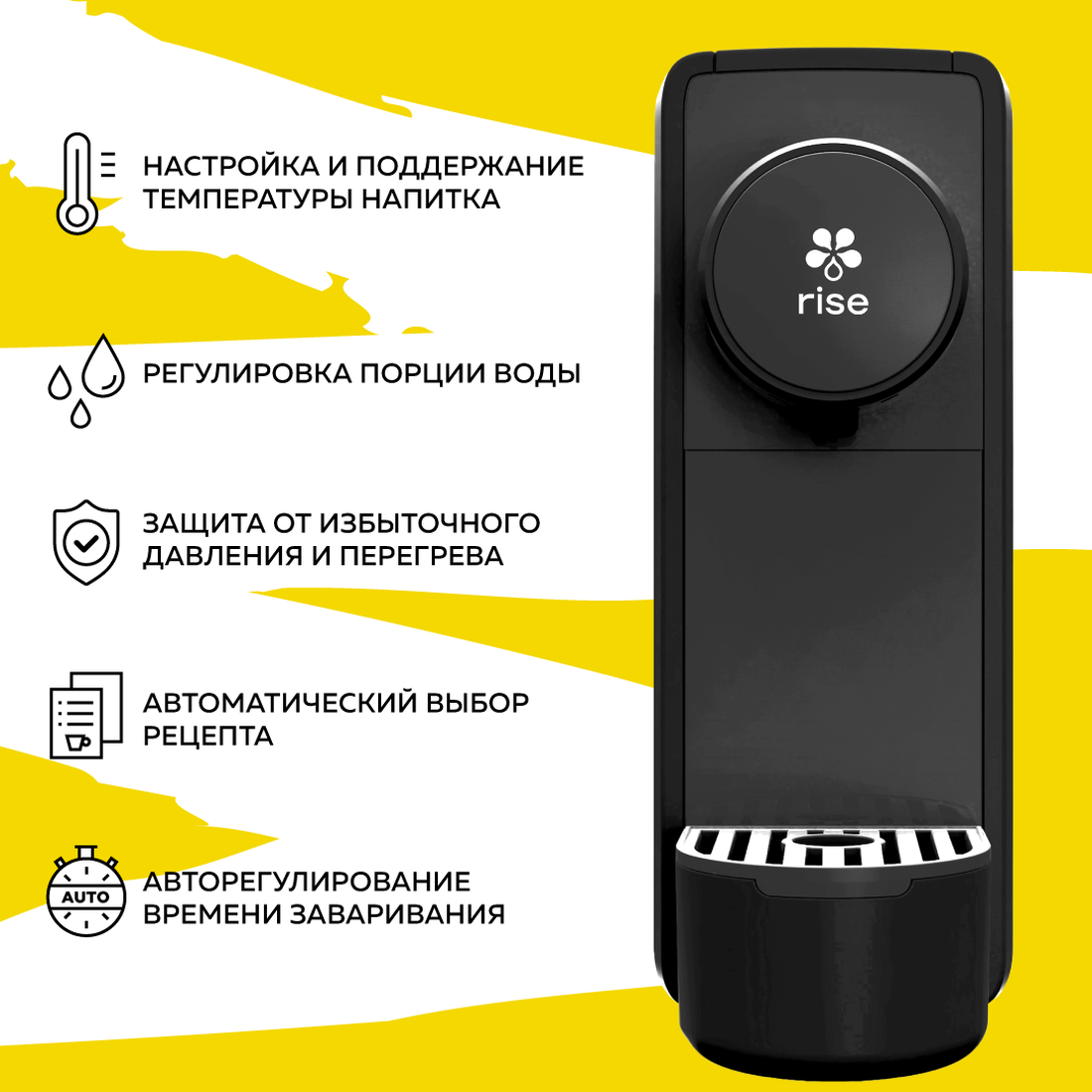 Кофемашина капсульная Rise черная под Nespresso, 19 бар, сенсорное управление информация:
