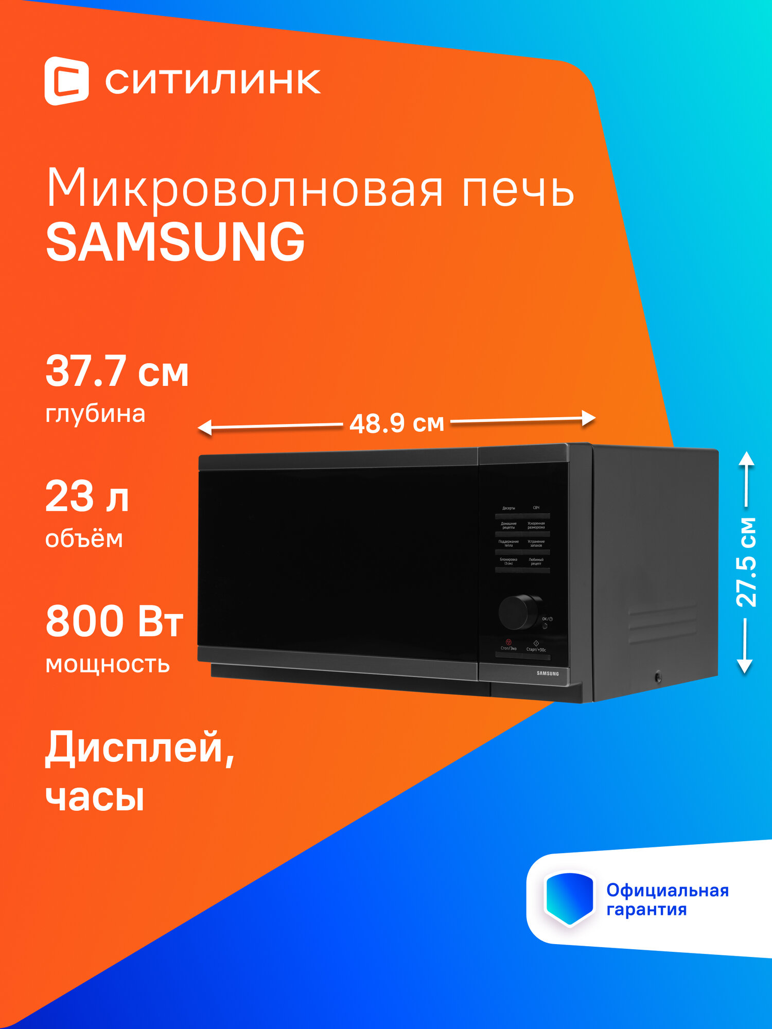 Микроволновая печь Samsung MS23DG4504AGBW, 800Вт, 23л, черная сталь информация: