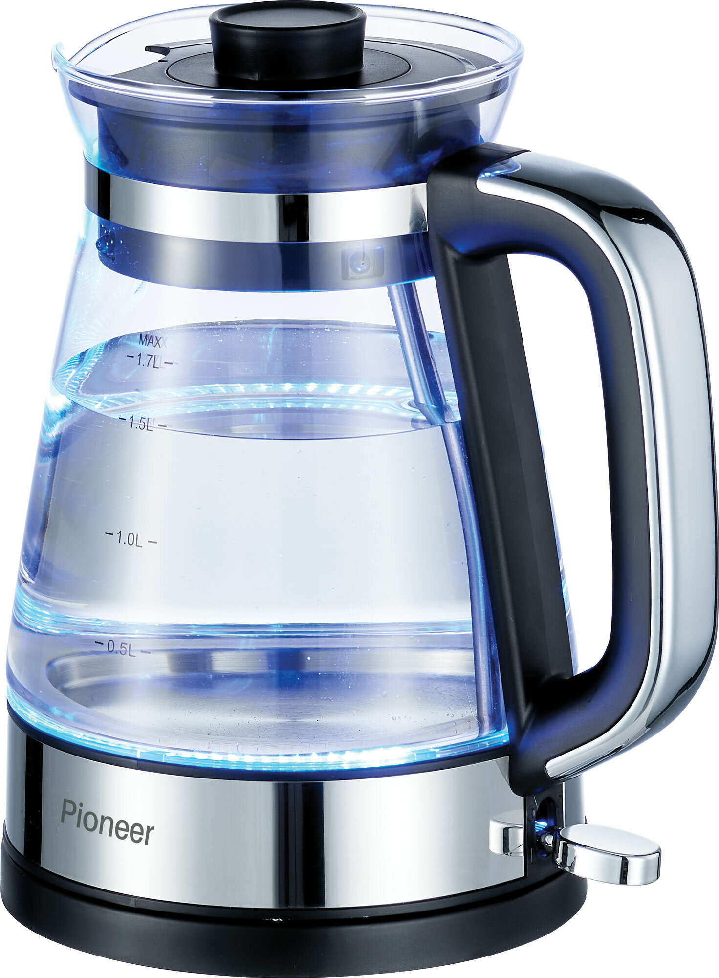 Электрический чайник Pioneer из термостойкого стекла с LED подсветкой, 1,7 л, автоотключение при закипании и снятии с базы, 2200 Вт