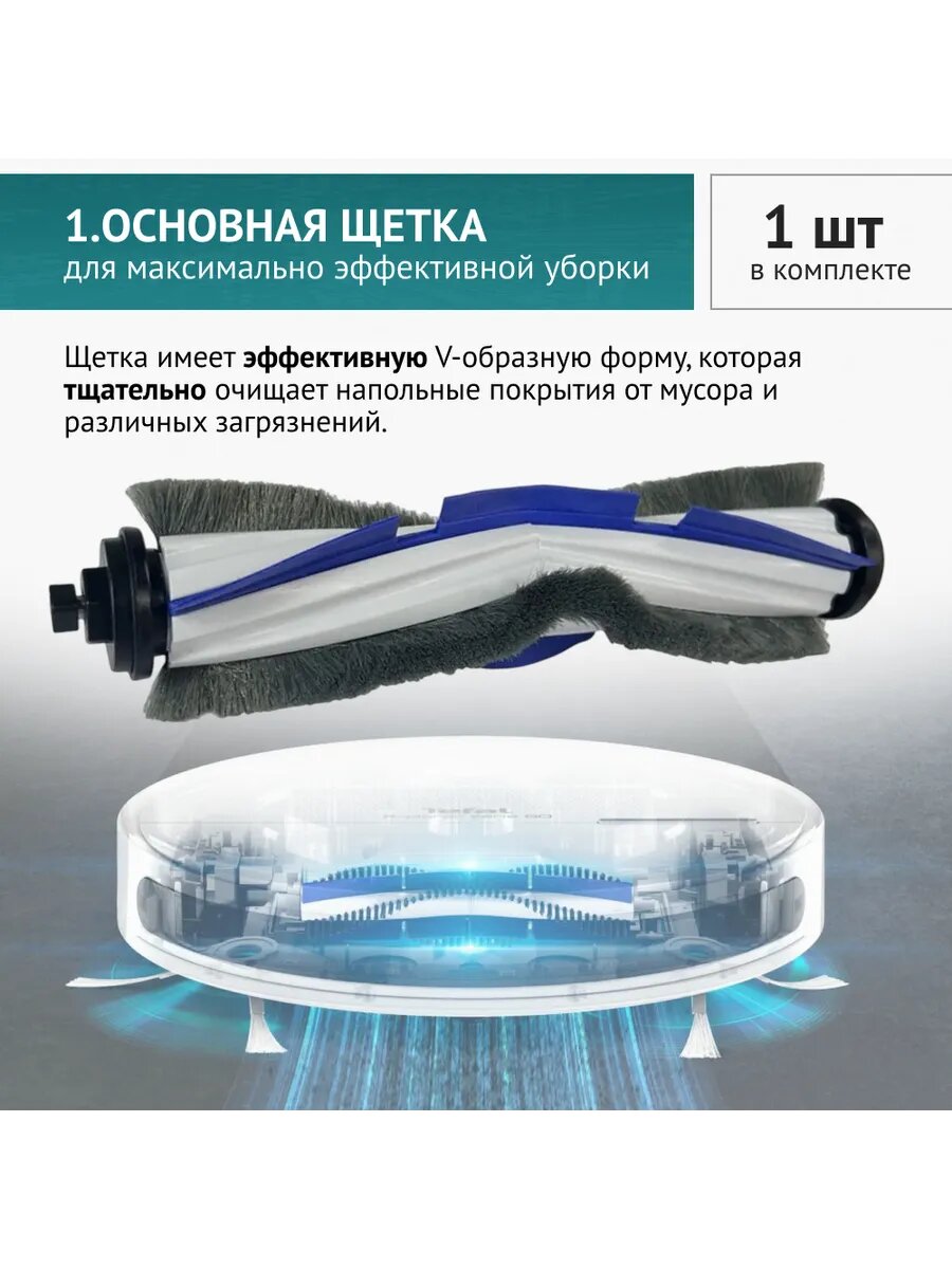 Комплект для робота-пылесоса Tefal X-PLORER 60, сменный HEPA-фильтр, боковая щетка, салфетка информация: