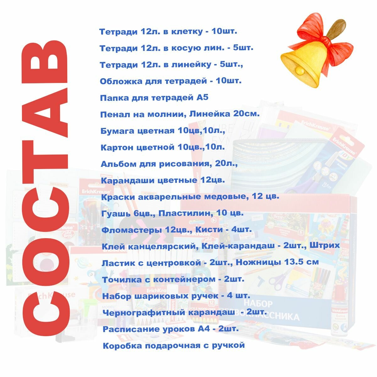 Набор первоклассника из канцелярских товаров, 63 предметов информация: