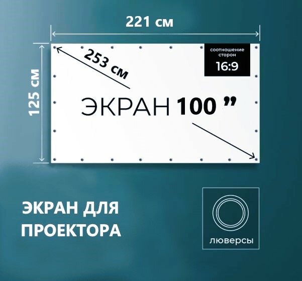 Экран для проектора 100 дюймов 16:9 (утолщенная версия) белый, матовый информация: